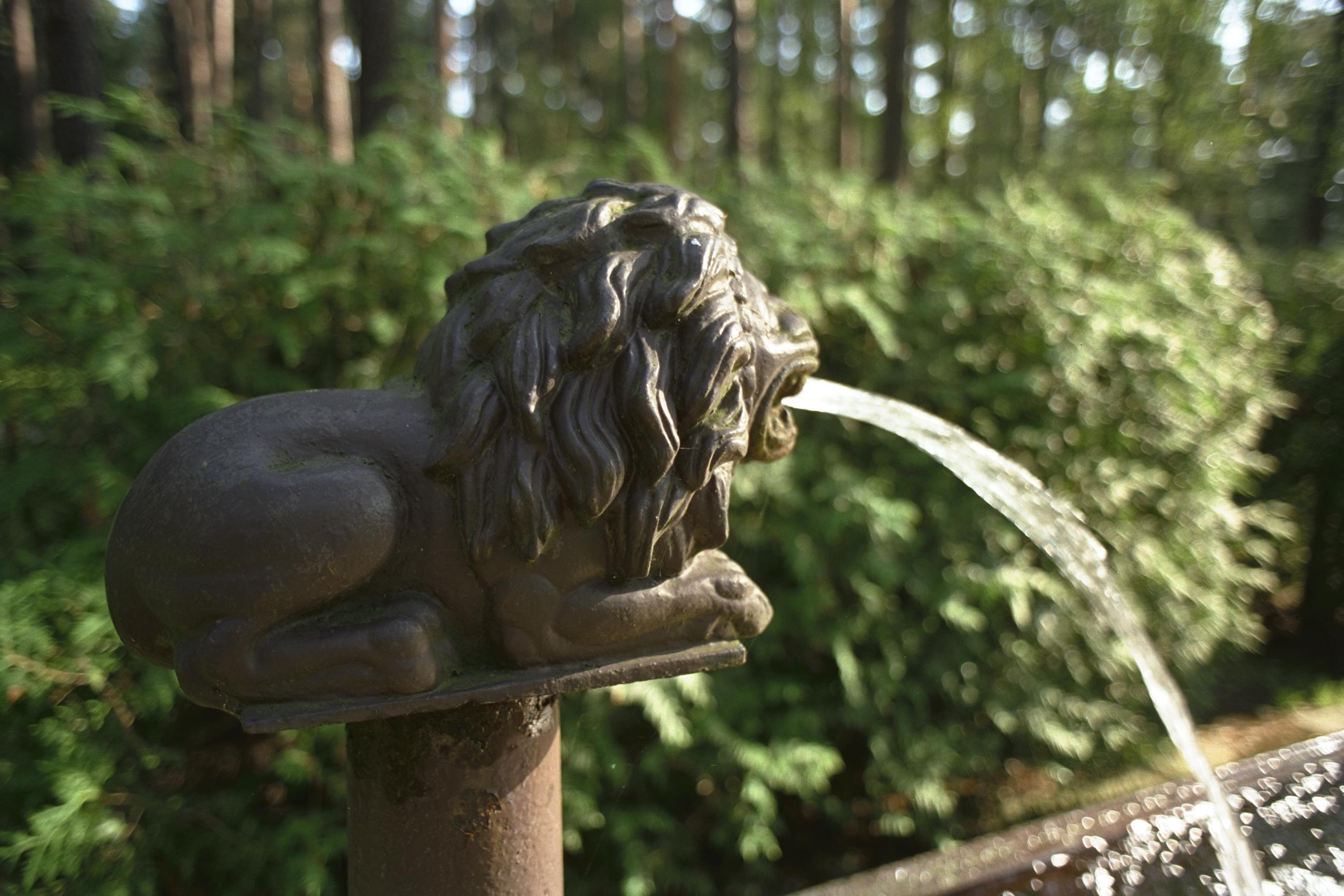 Detalj av brunnskar, vattenkastare i form av ett lejon.