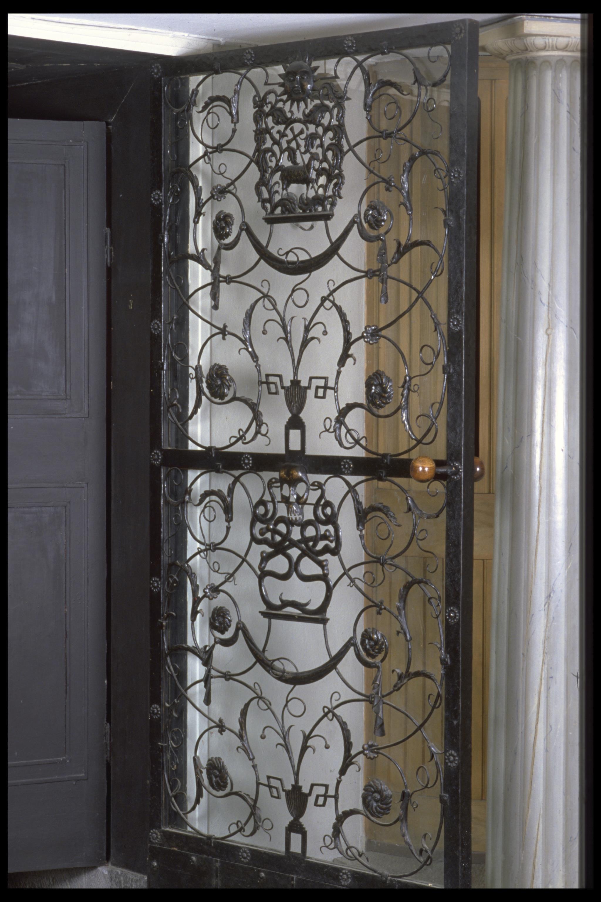 Skogskapellet, interiör, dörrgrind av järnsmide.