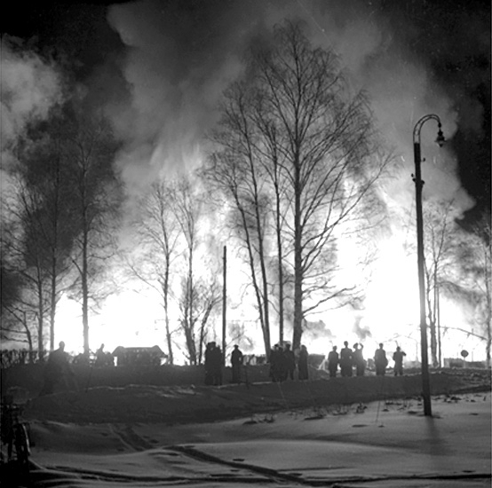 Titel: Branden i pappersmagasinet i Ställdalen (februari 1956).