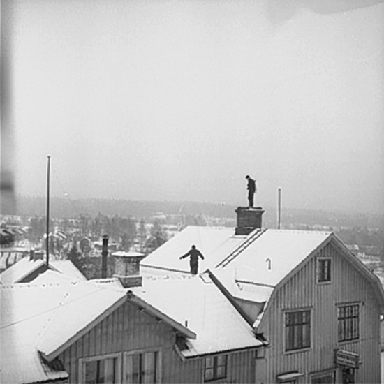 Bostadshus, sotare på taket.