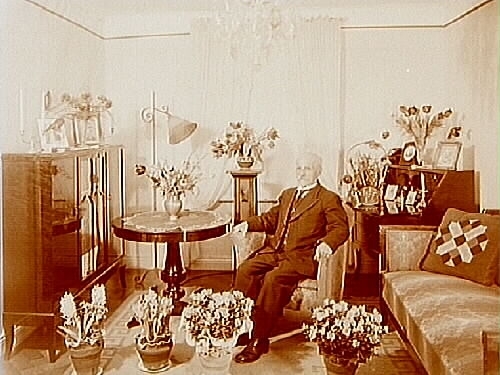 Rumsinteriör, en gammal man.