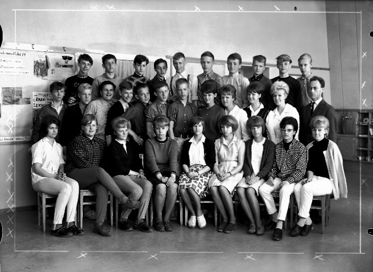 Vasaskolan, klassrumsinteriör, 30 skolbarn med lärare Ronald Adolfsson.