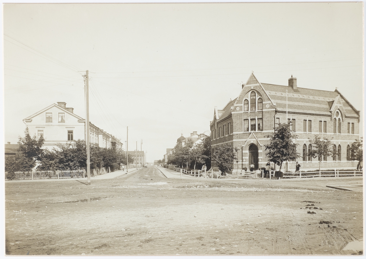 Norrgatan mot norr från Kilsplan. Brolyckans skola till höger.