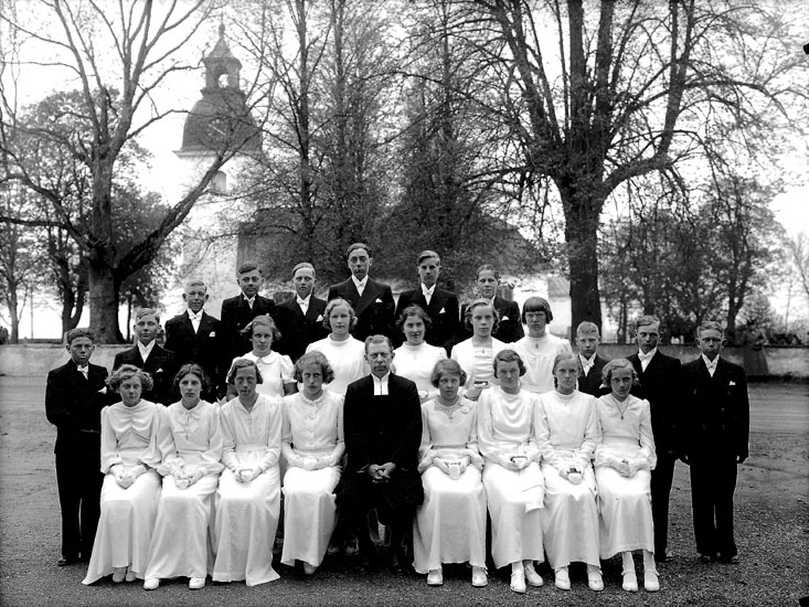 Konfirmander, 13 flickor, 11 pojkar och kyrkoherde Gabriel Carlsten.