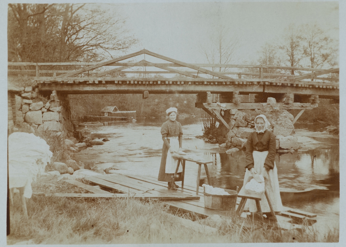 Tvättbrygga. Den s.k. Kvistbron över Svartån (blev senare riven och ombyggd).