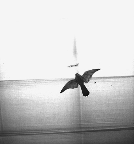 Gävleutställningen, interiör, en uppstoppad fågel (tornfalk).