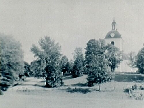 Ramsbergs kyrka från Stråssavägen och Konsum.