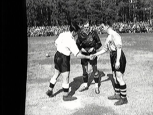 Slantsingling och ÖSK:s lagledare Sten Dahl i mitten.