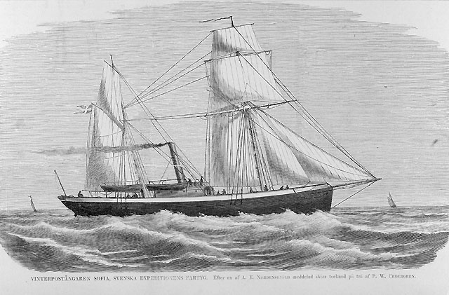Postångaren "Sofia", i postverkets ägo åren 1864-1894. Sommaren och hösten 1868 användes "Sofia" av A.E. Nordenskiöld för en expedition till Spetsbergen. Bilden är hämtad ur Ny Illustrerad Tidning år 1868.