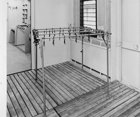 Utdragbart och flyttbart säckställ i F-avdelningen.