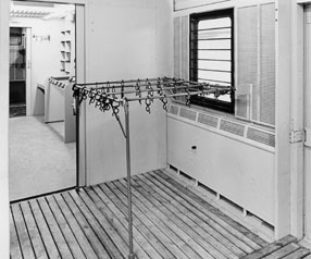 Utdragbart och flyttbart säckställ i F-avdelningen. I utdraget läge.