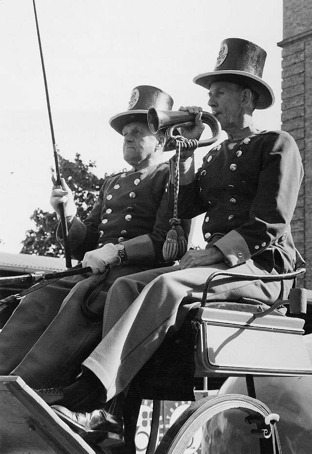 På kuglepostvagnen blåser förste postiljon Hans Rosén klart för