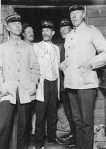 Fr. v: postexpeditör C A Hellman, postiljon Freijd, förste