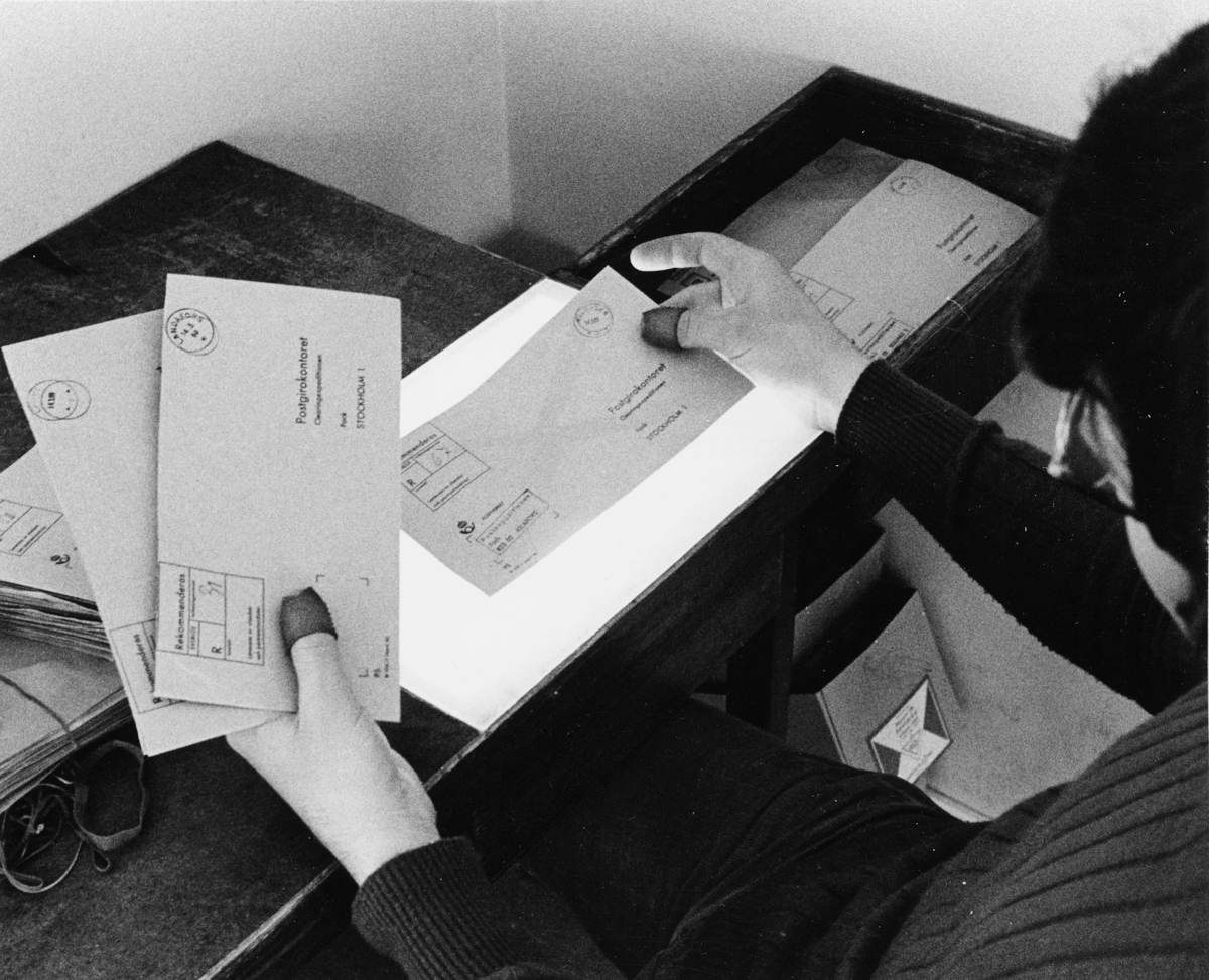 Här genomlyses samtliga kuvert som innehållit checker - på ett