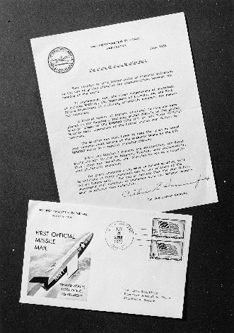Förstadags brev befordrat med raket, stämplat USS Barbero, Jun 8