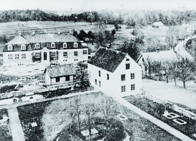 Postlokalen inrymd i Gamla skolan, huset i bildens mitt, detalj ur