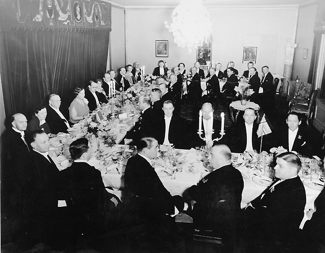 Nordiska Postkonferensen i Stockholm 1937. Middag på Grand Hotel den 21 september 1937, på inbjudan av Generalpoststyrelsen.