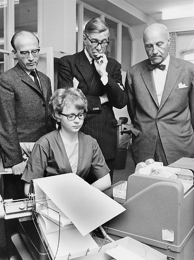 Studiebesök på Girots datacentral. Hålkortsstansning demonstreras.