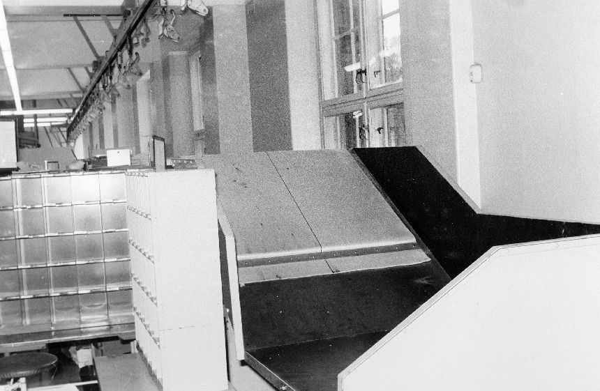 Foton 8-9 februari 1965. I taket hängtransportör för postsäckar.