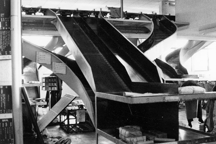 Paketsorteringsmaskin å huvudpostkontoret i Kyoto, Japan.