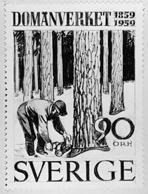 Förslagsteckningar - skisser - till frimärke Domänverket 100 år, utgivet 4/9 1959. Konstnär: Sven Ljungberg. Förslag III, med tandad kant. Valör 90 öre.