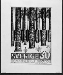 Förslagsteckningar - skisser - till frimärket Domänverket 100 år, utgivet 4/9 1959. Konstnär: Sven Ljungberg. Förslag nr "7".