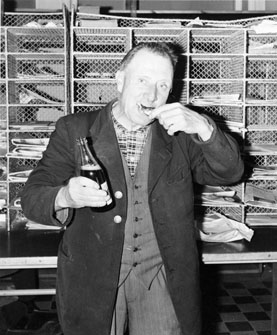 Cykelåkande lantbrevbäraren Ruben Carlsson tar en matrast före brevbärarturen.