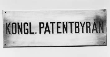 Mässingskylt för Kongl. Patentbyrån, som under åren 1885 - 1891 var underställd kommerskollegium.