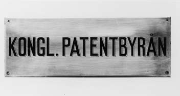 Mässingskylt för Kongl. Patentbyrån, som under åren 1885 - 1891 var underställd kommerskollegium.