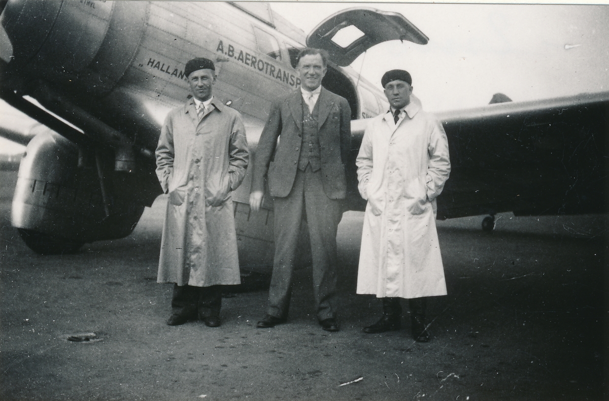 Nattpostflygplanet "Halland", på Bulltofta 1935. Nr 2 fr.v. Uno
