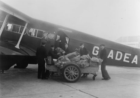 Engelskt flygplan, British Airways "G ADEA", med första luftposten