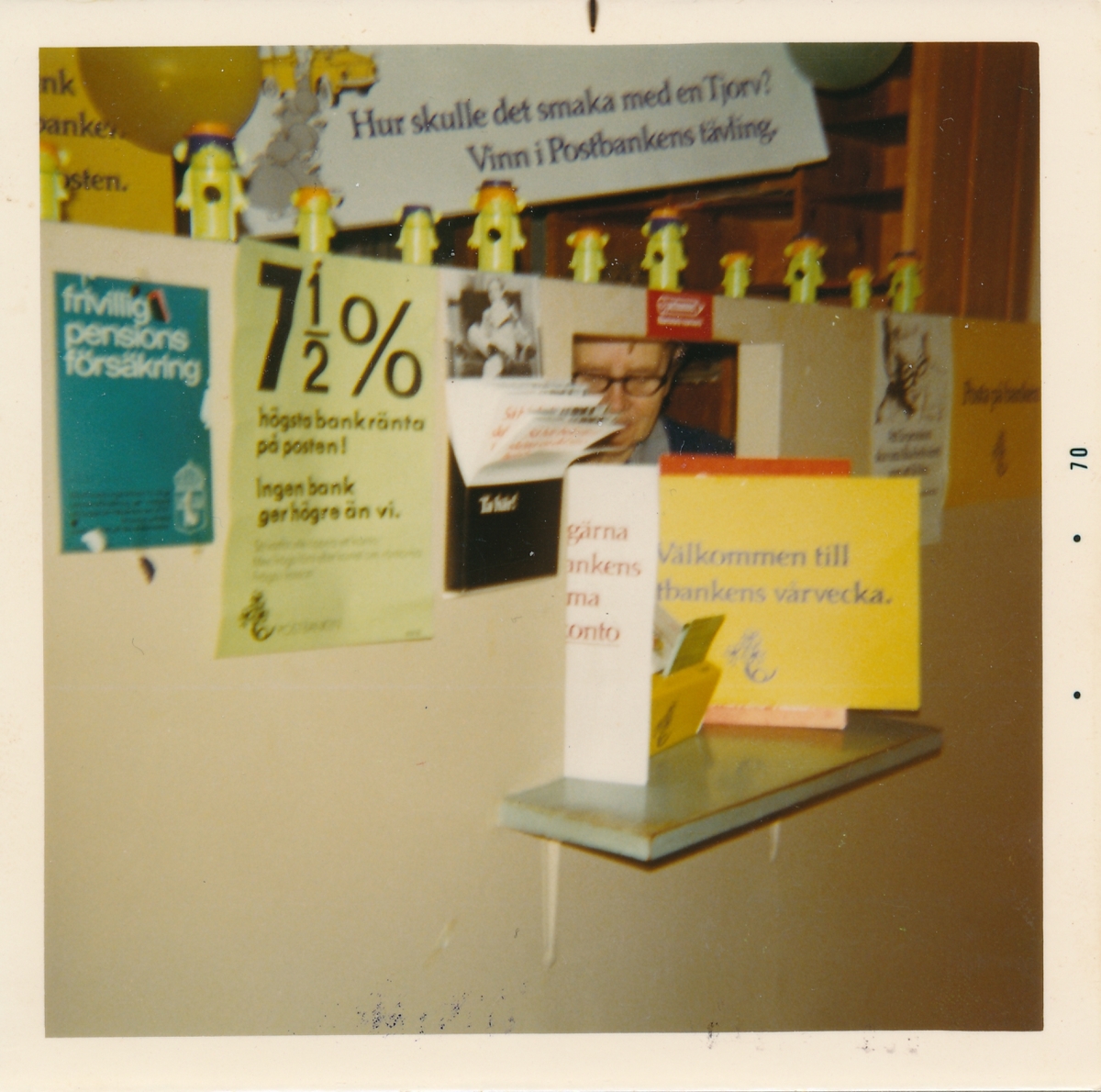Fotografi föreställande interiören av Postkontoret Skärhamn, Klövedal, 1970.