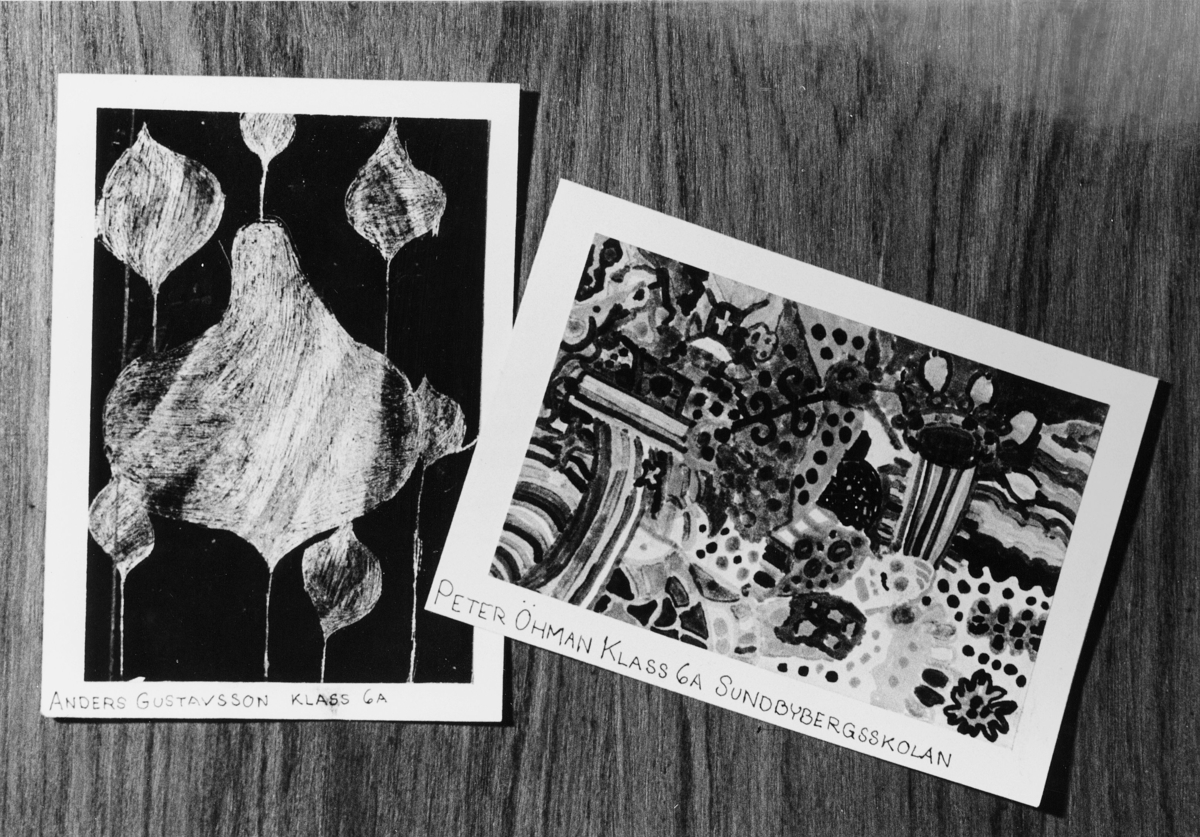 Några exempel på barnteckningar in-lämnade till Postmuseum, som