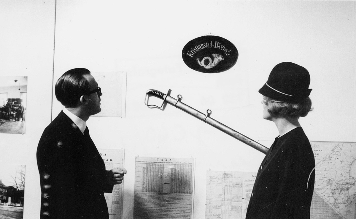 Titel: Stig Nilebrant från Postmuseum och postvärdinnan Inga Maj Lalander.
