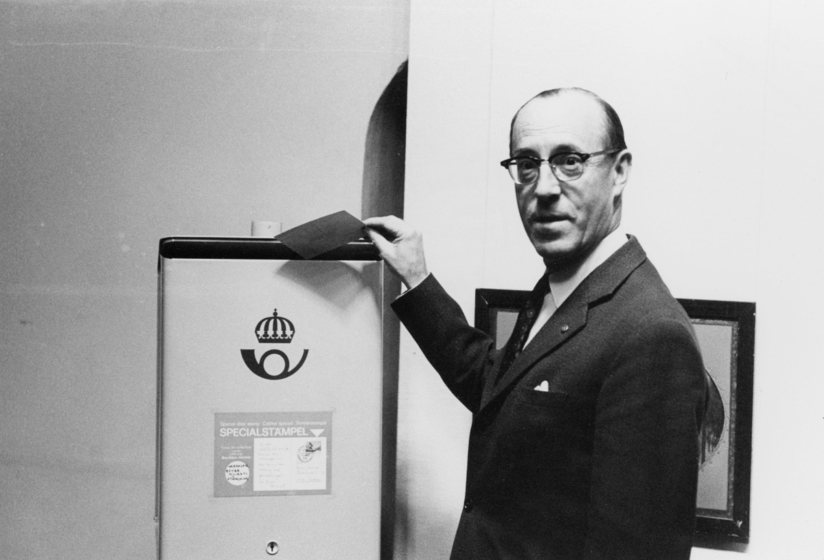 Pm Claes Claesson, Älmhult, postar brev på utställningen.