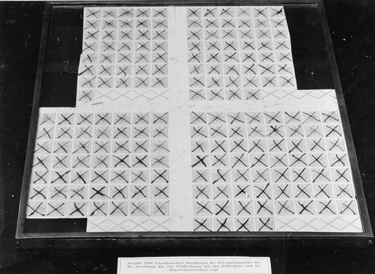 Ofullständigt tryckark av 45 centimes märke, 1850. Österrikes