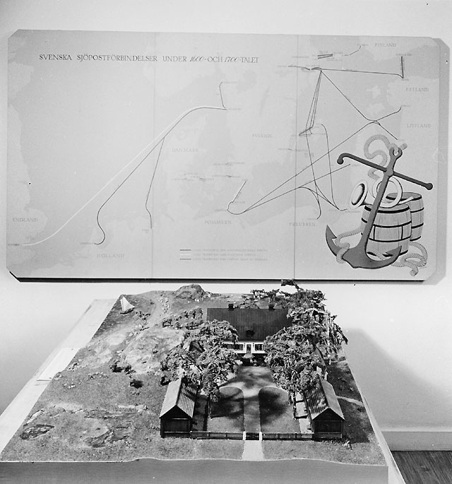Modell av posthuset i Grisslehamn, i rum nr 6, på nedre botten.