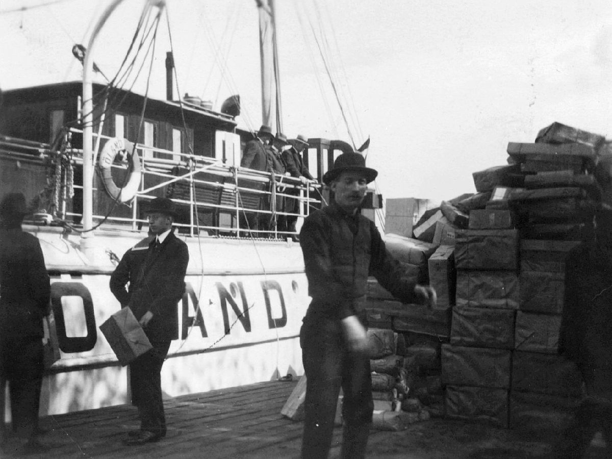 Transitopost på kajen i Gävle. Postångaren Öland.