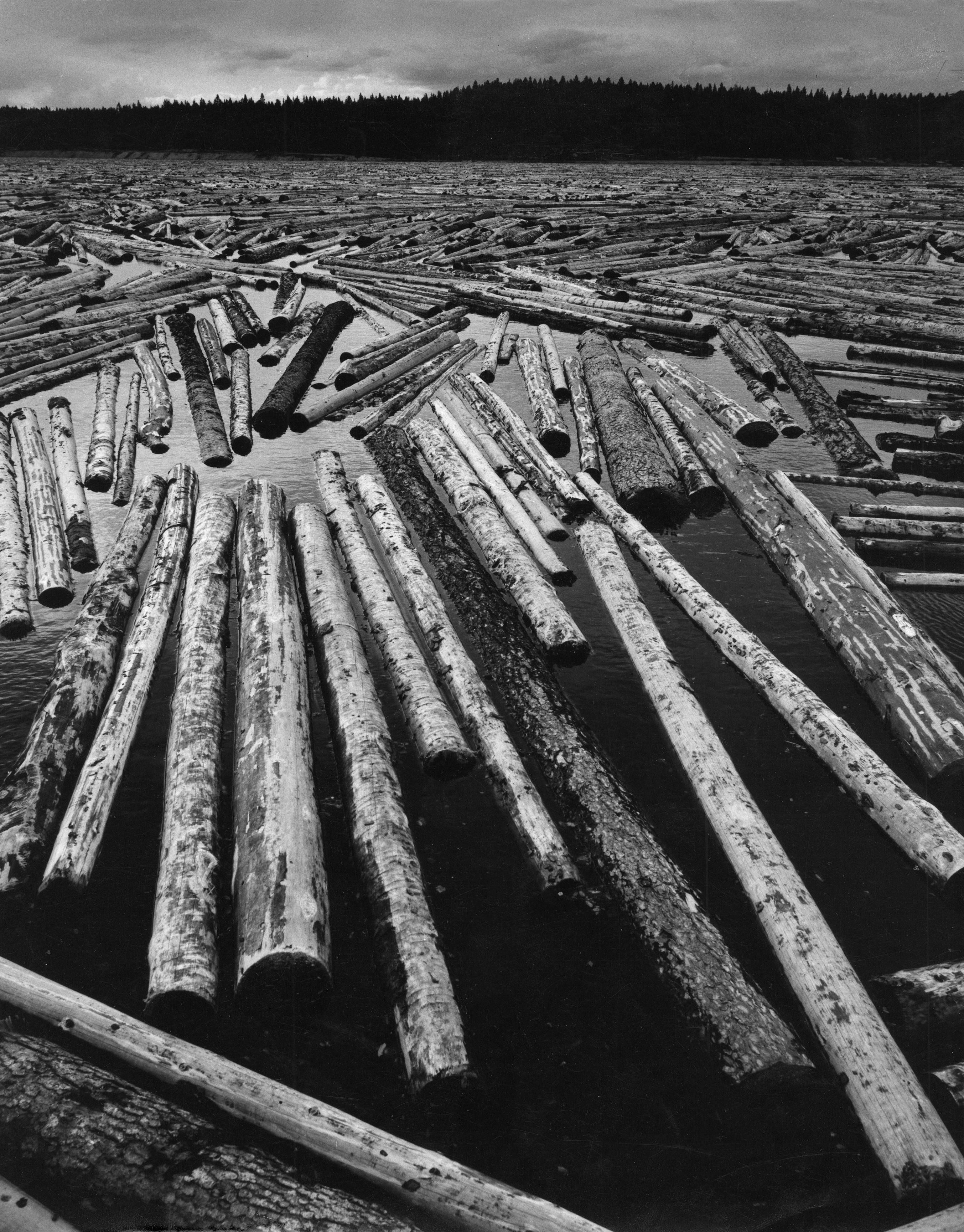 Flottning av timmer. Bilden troligen från början av 1960-talet.