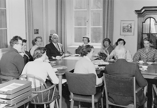 (närmast), fröken Gunnel Jönsson, fru Majken Cederberg-Olsson (halvt