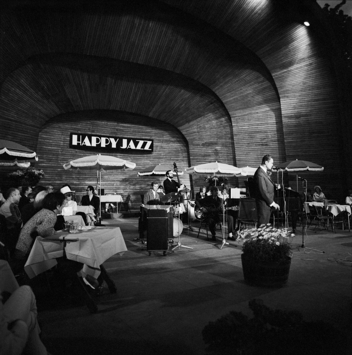 Titel: Evenemanget "Happy Jazz" på Sollidenscenen, Skansen. Leif "Smoke Rings" Andersson och Ove Linds orkester.
