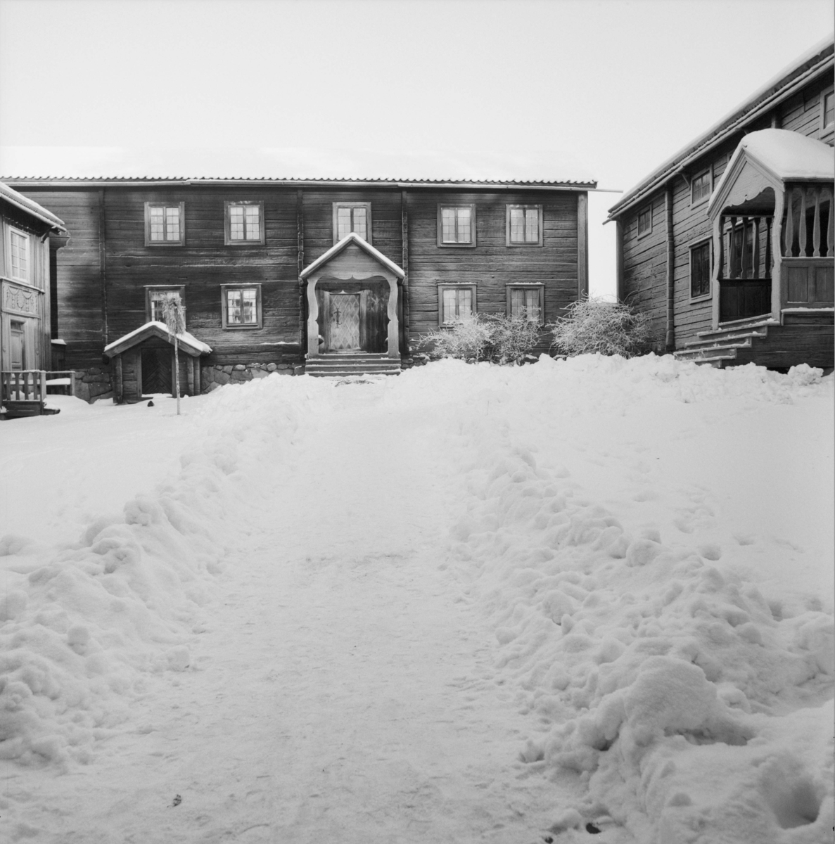 Vinterbilder på gårdar, ute och inne. Delsbogården, Skansen.