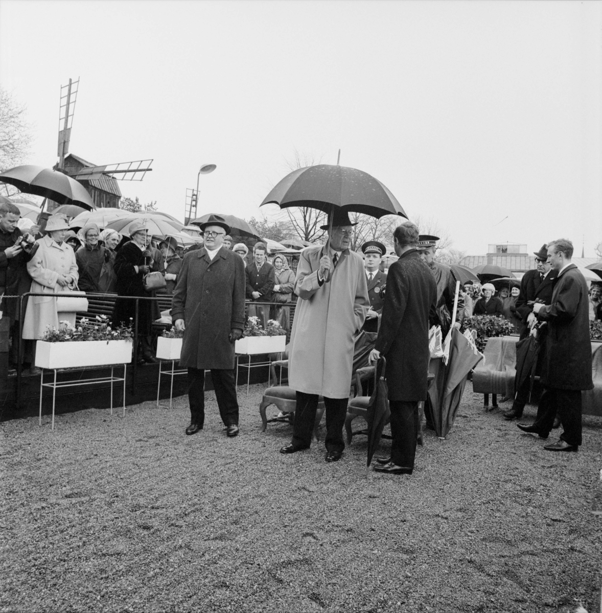 75-årsjubileet. Kung Gustav VI Adolf och kronprins Carl Gustaf besöker Skansen.