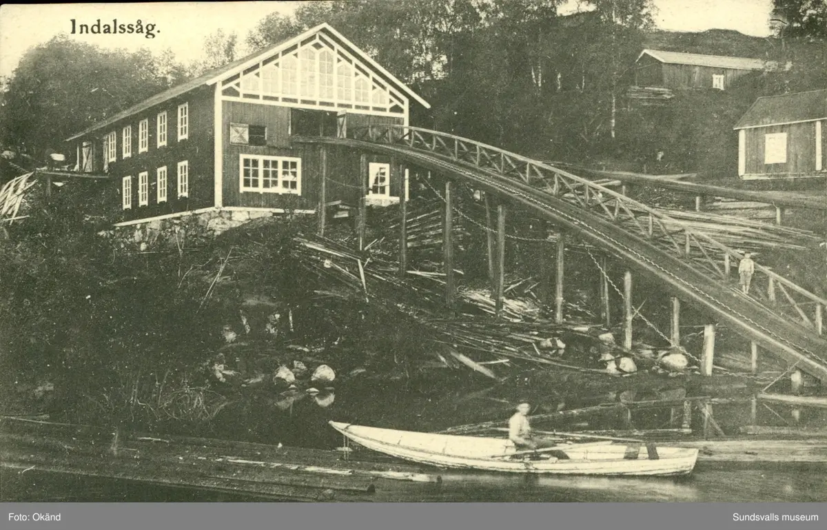Vykort med motiv på sågen i Indal.