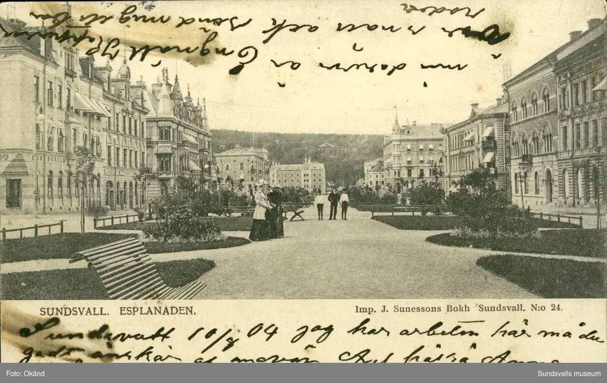 Vykort med motiv över Esplanaden i Sundsvall.