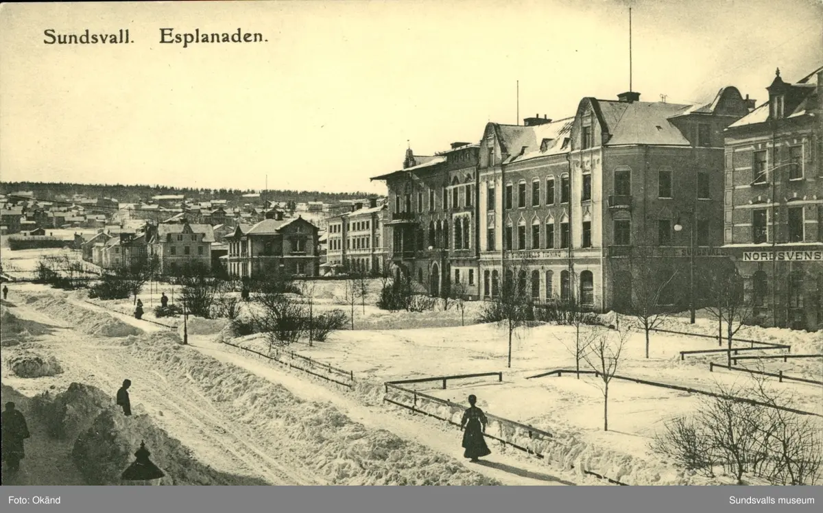 Vykort med motiv över Esplanaden i Sundsvall.