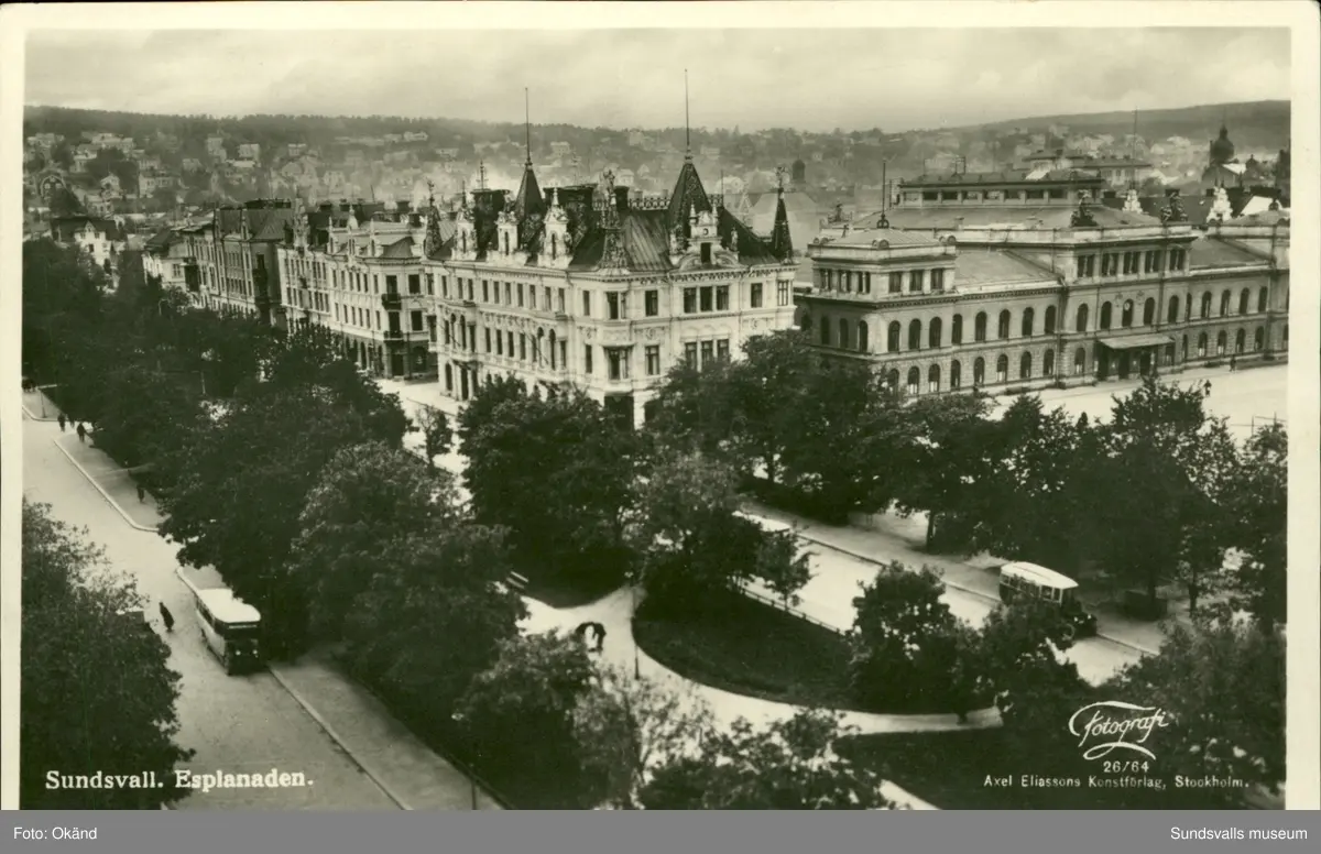 Vykort med motiv över Esplanaden i Sundsvall.