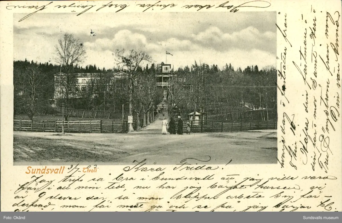 Vykort med motiv över entrén till Tivoli i Sundsvall.