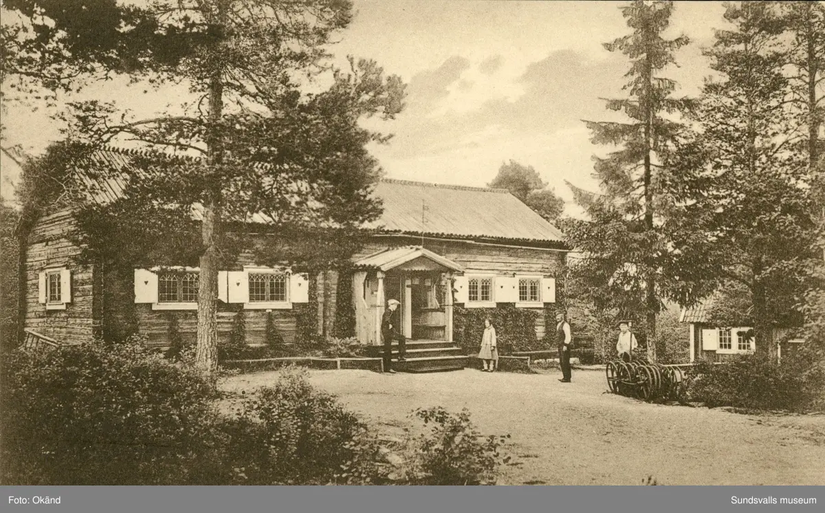Vykort med motiv över byggnaden Bredsjöstugan på Norra berget i Sundsvall.