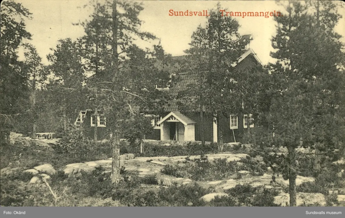 Titel: Vykort med motiv över byggnaden Trampmangeln på Norra berget i Sundsvall.